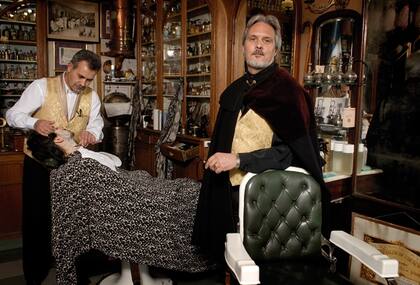 Peralta llegó a Caballito y se instaló en otro siglo. Ante sus pelos apareció el dueño de la peluquería La Epoca , Miguel Barnes, apodado el Conde de Caballito por sus vestimentas arcaicas. “Esta peluquería fue catalogada el primer museo viviente por la National Geographic”, reveló el Conde. La comitiva aplicó una mirada al entorno: navajas del siglo XIX, peinetas Venado, espejos bañados en bronce. Es un museo. Incluso el guía miró aliviado un edicto policial pegado en la pared que prohibía escupir y otro que impedía ingresar con sombrero.