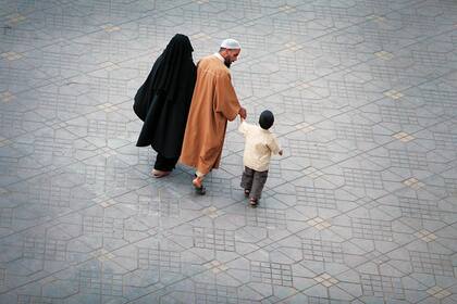 Javier señala algo en la vereda. Me doy vuelta. Varias mujeres con velo en la cabeza. Le pregunto por ese tema, porque la verdad que no lo tengo muy en claro aún. Tengo diferentes versiones y entonces Javier me da la suya: "La cuestión del velo, durante la primera mitad del siglo XX se fue abandonando. Era algo más asociado a las mujeres del campo, y las mujeres de la ciudad, se lo quitaban como símbolo de liberación. Ahora estamos en un proceso de volver a lo musulmán, a lo de antes, esto es el revival de la religión, porque las mujeres vuelven a usar el velo, el respeto del ramadán (ayuno diario), se compra mucho más material religioso por las calles. Hasta el propio lenguaje de los marroquíes está cambiando: la gente, antes, atendía el teléfono y decía aló, y ahora dice salam, que es un típico saludo musulmán".
