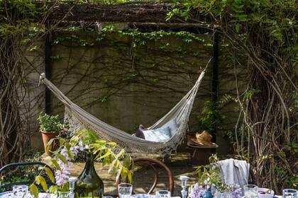 La sombra que brinda una enredadera marca el espacio perfecto para instalar la hamaca en el patio o en el jardín. La sobremesa se prolonga hasta que llegue el sueño. Si no hay árboles fuertes, conviene fijar columnas de hierro que sirvan como soporte.