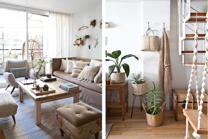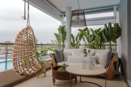 A falta de una, en la casa de Virginia Escribano hay dos hamacas: de colgante de mimbre en el balcón y la otra de tabla, con tirantes de macramé en el living. ¿Se usa?: sí, y no solo para balancearse, también sirve como apoyo temporal de pequeños objetos.