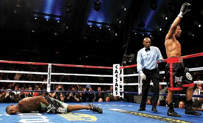 Al séptimo, Maravilla era pura frescura. Corrió, bailó, toreó. Cintrón abrazaba al argentino y buscaba la campana más que la victoria. Martínez aprovechó: apuró uno, dos, tres pasos, un golpe corto con la derecha y sacó la piña con la izquierda. Cintrón cayó como en cámara lenta y quedó en cuatro patas en el medio del ring. El referí contó hasta 10. No va más. Nocaut.