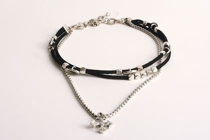 La gargantilla más famosa de los años '90 -inseparable del grunge de la época- se puede encontrar en todas sus versiones, desde joyas hasta un simple elástico negro, puntilla o la cinta roja anudada en la nuca que Lily Rose Depp llevó a un desfile de Chanel. O el collar de perro onda chica mala de la top Cara Delevingne. La opción minimalista son las microgargantillas con brillante. Una herencia de las mujeres francesas del siglo XVIII que utilizaban esta forma de collar ceñido al cuello. Nicole Richie lo elige rígido y metalizado en oro; Dior combina prendas choker con seda anudada al cuello. En Dressit.com conseguís online una gargantilla de doble tira de gamuza y apliques, con cadena y dije de cruz de La Mercería.