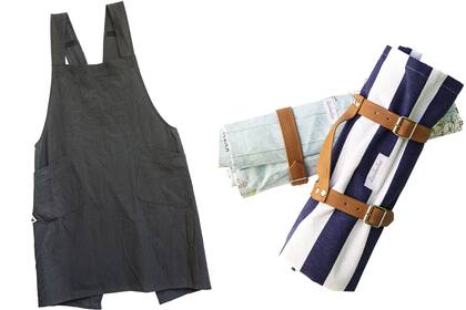 - Delantal Emma en colores neutros. Ideal para no temerle al barro y enchastrarse a gusto. El diseño se adapta también para cocina. $1.800; Flor Dorronsoro. IG @flordorronsoro