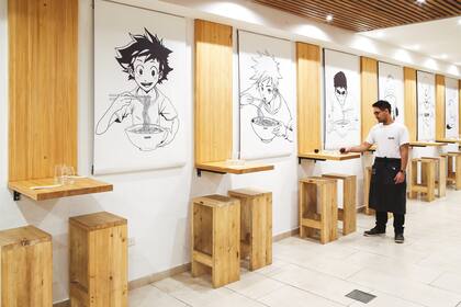 La preparación del ramen está dibujada en el mural de la izquierda del restó, en grandes paneles, y tambien en los baños impecables.Los hermanos Totake, con mucha experiencia y formación en Japón y la Argentina, abrieron Mirutaki hace tres meses, con la colaboración de otros hermanos, y amigos arquitectos. Ambos treintañeros, Nicolás estudió Artes Culinarias en Japón durante dos años, y habla el idioma; Matías conoció esa cocina en San Pablo y Nueva York.