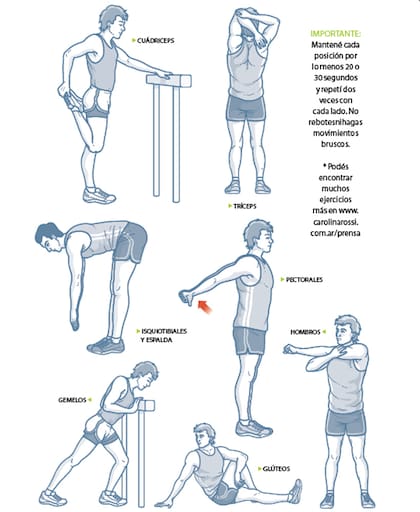 Aunque parezca un ejercicio sin esfuerzo, lo cierto es que puede dar lugar a contracturas, molestias o dolores, especialmente para los que recién se inician o para aquellos que pasan muchas horas pedaleando. La cintura, las cervicales, los hombros y los tríceps pueden resentirse bastante, especialmente si se trata de una bicicleta de ruta donde el torso va inclinado hacia delante. Estirar el tren superior será una gran ayuda para prevenir dolores e incluso lesiones. Y las piernas y los glúteos, desde ya, te van a agradecer un montón que los estires: el trabajo que hacen tiene un papel protagónico.