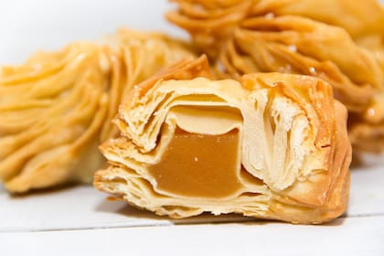 Para el postre, clásicos pastelitos que se pueden rellenar con dulce de batata, de membrillo o dulce de leche. Los que no tengan o tiempo o ganas de amasar el hojaldre pueden reemplazarlo por tapas compradas. "El secreto para que las hojitas del hojaldre se abran es comenzar la cocción en aceite tibio y una vez que colocamos el pastelito, moverlo para que se infle y ayudarse con una cuchara para bañarlo con el aceite de la cacerola. Prefiero freírlos con grasa en lugar de aceite porque es más saludable, más económica y no aporta sabor ni olor a la preparación. Y una vez listo, lo cubrimos con un poco de azúcar", recomienda Martín Arrojo, chef del restaurante Jornal.