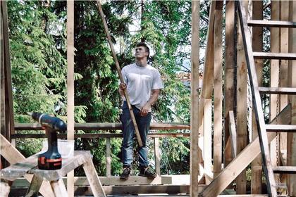 Con la doble intención de pasar inadvertido en el bosque y de sacudirse cualquier imposición burocrática que lo detuviera, un joven diseñador construyó su nido con astucia y delicadeza.