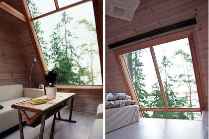La casita de Robin tiene unos muy meditados 8,9m2: apenas unos centímetros por debajo del límite a partir del cual se exige permiso de obra en la zona boscosa de Sipoo