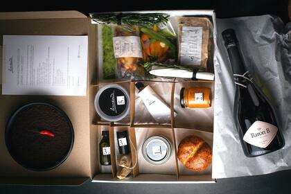 Las cajas vienen, además, con ingredientes artesanales para acompañar: •Pomo de cajú •Chutney de fruta estacional •Sal de apio, aceite de hierbas •Garrapiñadas de especias •Financiers de rica rica •Fruit nitro. Y una botella de Terraza Gran Reserva Malbec o una Baron B Brut Nature Cuvée Millésime.