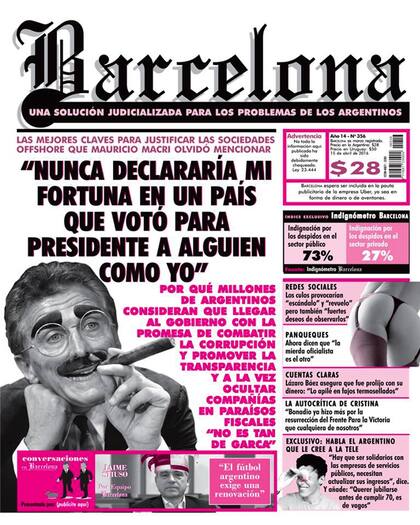 Barcelona nació en 2003 como una revista mensual que parodiaba al diario Clarín. Hoy, además de continuar en papel y ser así única en su especie, tiene una vida más agitada gracias a las redes sociales. Comenzó a utilizarlas, sobre todo, para fomentar las visitas a su web y aumentar la venta de la versión digital de la revista. Hoy ese primer objetivo se mantiene, pero no es el único: suena impensable en estos días que una publicación de ese tipo no tenga una presencia activa en las redes. "Nuestra web no tiene un tráfico propio; todos entran por las redes, en su mayoría por Facebook. La realidad es que esa parte, casi toda, la hago yo. Subo tres o cuatro notas nuevas, o fotos; depende de la inspiración y del tiempo. La publico en la web y luego la replico en Face y Twitter", explica Sánchez.