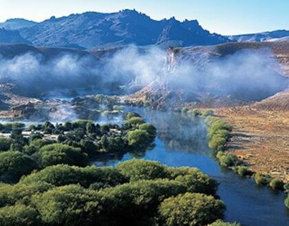 Se forma a partir de la confluencia de los ríos Aluminé y Chimehuín, tres horas al norte de Bariloche.
