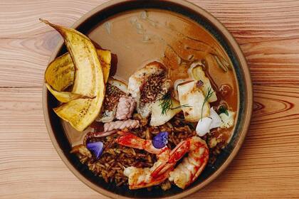 Una de las más felices noticias gastronómicas de este año: tras seis meses de tener sus puertas cerradas, Ilatina vuelve a recibir comensales. Y lo mejor de todo es que lo hace con una propuesta más relajada y amigable que en el pasado, tanto en precios como en la experiencia (dejando el menú por pasos de lado). "De algún modo, mezclamos dos proyectos que ya eran parte de nosotros: el food truck de Pura Sabrosura, que llevábamos a ferias como Masticar y los platos emblemáticos de iLatina", cuenta Laura Macías, a cargo de esta nueva fase. Así, en el precioso patio delantero del restaurante (separado por un cerco de plantas de la vereda, ganando seguridad e intimidad) se pueden disfrutar a la carta su famoso ceviche nikkei, también un encocado de mariscos (langostinos, calamares y pescado en leche de coco) o la costilla de cerdo caramelizada en salsa de ají panca y naranjas asadas. Entre los best sellers de la casa, para comer en el lugar y en take away, están los fantásticos chipatacos, donde el maíz de la tortilla clásica se reemplaza por almidón de mandioca y queso. Tienen dos opciones de relleno, uno más rico que el otro: el de pollo asado en mole al estilo Oaxaca con pickles y yogurt con menta y huacatay; y el de hongos, tomates confitados, pickles y mermelada de jalapeño con flor de Jamaica. Tip extra: para beber, sumaron tres vinos naturales elaborados en exclusiva para el restaurante: un pet nat de Juanfa Suarez, un naranjo de criollas de Paula Michelini y un blend de Malbec de Pancho Morelli.