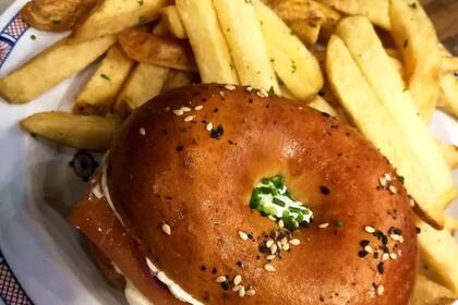 Ocupando una amplia y tranquila esquina, con un frente generoso que le permite colocar varias sillas y mesas al sol, Bourbon Brunch & Beer tiene una de las más bienvenidas propuestas de vereda del barrio de Palermo. Hay buenos cócteles (desde un Old Fashioned a un cuatro opciones de gin tonic), cervezas tiradas, vinos y una cocina repleta de sabores nacidos en el brunch pero que son disfrutables hasta que termina el día. El bagel es uno de los emblemas de la casa: gravlax de salmón casero (curado por más de 30 horas en vodka con sal, azúcar, pimienta, eneldo y granos de enebro y mostaza), queso crema acidificado con yogurt, alcaparras y unas cebollas encurtidas en vinagre de manzana y miel de romero. Sale con papas fritas, en un combo que es pura felicidad.