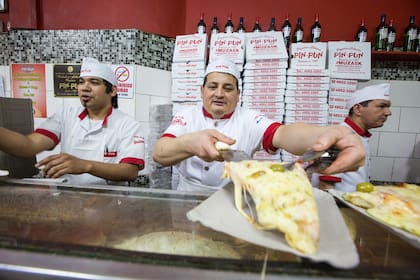 Pero no todos opinan lo mismo. Jorge Guerra es mozo de El Imperio de la Pizza y sostiene que no se puede comer más de tres porciones en un almuerzo, por más largo que sea. Se explaya: "Depende de la contextura de la persona, el hambre o las ganas, es cierto, pero si se trata de personas promedio no hay quien coma más de tres porciones acá, que las porciones son suculentas. ¿Siete porciones? No van a terminar el recorrido".