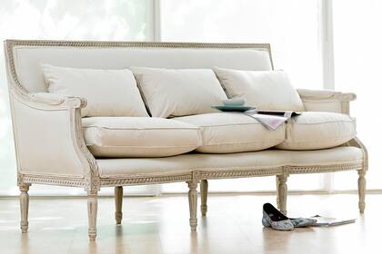 Líneas rectas y figuras geométricas son las características típicas del mobiliario neoclásico. Las patas acanaladas y largas en forma de vela: una marca registrada de este clásico sofá.