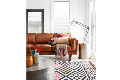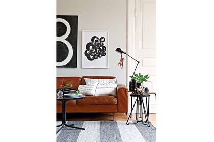 De cuero, con líneas modernas. Un buen equilibrio para un espacio que combina elementos de diversos orígenes.