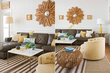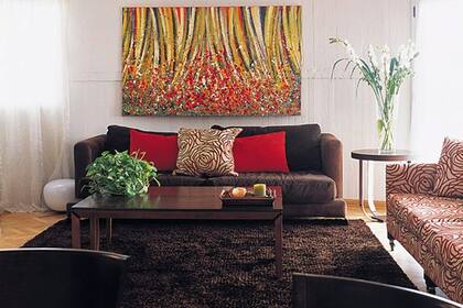 Aquí el tono del sillón juega con el de la alfombra, dando una sensación de continuidad.