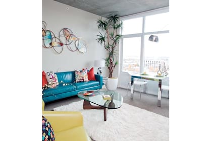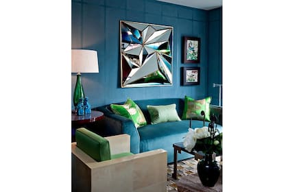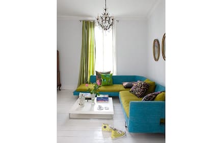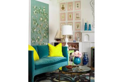 Una combinación intensa y fresca en este living que combina muebles con distintas texturas y estilos. | Foto: