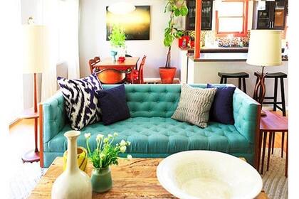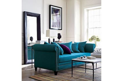 Un turquesa vivo para un sofá que resalta por su capitoné. | Foto: