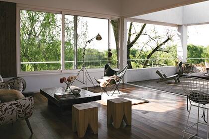 Banquitos: estos troncos cortados pueden servir tanto de asiento como de mesita; se combinan muy bien con muebles de diseño liviano como los que se ven de caño y el sillón retro tapizado.
