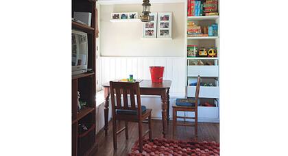 En este ambiente pensado para que los chicos jueguen y pinten, la elección de un machimbre pintado es ideal.