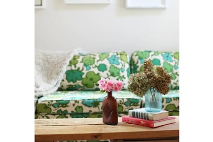 Flores y más flores en este sofá con un etampado súper jugado. ¿Te animarías a aplicarlo en tu casa? | Foto Ohmydeerhandmades