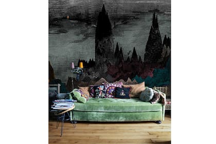 El terciopelo es siempre elegante. Aquí, el sofá sin respaldo en un verde suave se conjuga con una amplia variedad de almohadones de distintas texturas, estampas y colores. | Foto: Thebooandtheboy