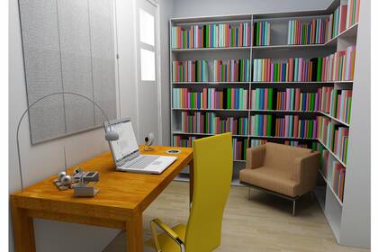 Nos daba un buen dato para tener en cuenta en función al uso de color: "La cuota de color está cumplida por los libros...". Tal vez, en función a ellos, se puede elegir complementos como cesto de papeles o lapiceros, que pueden completar el lugar.