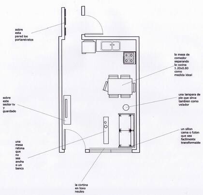 Juana Storni nos dejó una imagen al respecto para ver cómo podría ser una barra para este lugar . Tenemos más ideas aquí con este extracto dentro de las imágenes, me pareció interesante el uso de un banco como mesa ratona. Al estar acotado en medidas los elementos multifunción son una buena elección.