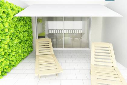 Pasemos a la terraza que, como decía Meridiana, "es una buena expansión del interior, donde se puede colocar un toldo". Así se generaría un semicubierto que esté en relación directa con el interior. Además incorporaría reposeras y quizás un juego de mesa y otras sillas para exterior.