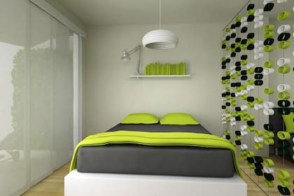 Para evitar las mesas de luz, recomiendo colocar uno o dos estantes flotantes. Estos ocupan menos espacio y ayudan a sectorizar el ambiente.