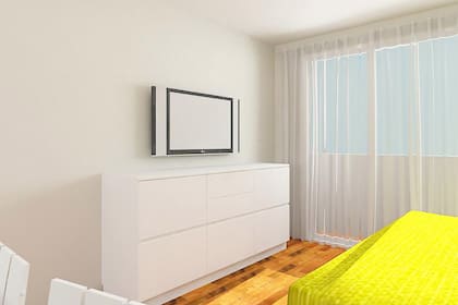 *En cuanto al mueble de la TV, si la idea es reemplazarlo, lo mejor sería optar por uno bajo, cerrado y de una altura similar al que está hoy (90cm aproximadamente).