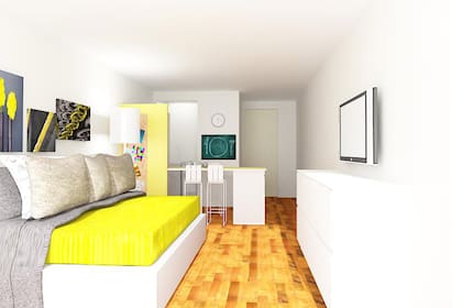 *Es importante tener en cuenta al balcón. Podría tener una doble función: por un lado, la de expansión del ambiente (con un par de sillas y una mesa plegable lograrías un espacio nuevo en el depto).