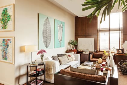 - Por el tipo de espacio, no agregaría una mesa ratona: daría un efecto de encajonamiento o un lugar muy compacto a la vista. De ser necesario, agregaría una mesa chica junto al sillón de dos cuerpos.