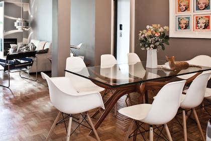 Estoy de acuerdo con la distribución que craneó nuestra anfitriona durante esta semana. En el transcurso del caso ella nos decía: "moví todo de lugar y trasladé el estar de la misma forma pero junto al balcón y donde estaba el living puse el comedor con la mesa en la misma posición. El mueble rojo lo puse contra la pared chica (al lado de la entrada a la cocina)".