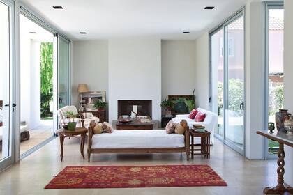 - Para unificar el conjunto, una alfombra en tonos tierra o con un diseño un poco más elaborado. Podría repetir el tono de los textiles de las sillas del comedor.
