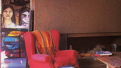 Otra opción, sería dar una textura sobre el muro. Como te muestro en la imagen, donde también se conjuga lo moderno con lo artesanal. Si la opción es iluminar, más el muro, lo pintaría de un color (hacia los tierras como te gustaba), donde el tono en la zona central sea más esfumado y más concentrado hacia los bordes. Con eso vas a lograr darle un sensación de pintura lavada con una terminación más rustica. Esto se puede hacer mientras la pintura esta fresca, con una muñeca, "limpiando la pared". (Si te animás hasta podés hacerlo vos!!!).