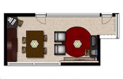 Respecto a la distribución del lugar, el plano sería como lo que te proponía Carcor 47. Sobre este tema, Elena3877 decía: "Agrupar todos los sillones en el área de living y separar mejor las funciones"; mientras Gorda66 agregaba: "Si hay que fletar alguno de los sillones, yo me quedaría con los dos chicos."
