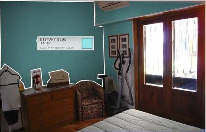 Por lo que estuve observando entre las ideas que aparecieron, la gama tiene que estar entre los celestes y el turquesa. Por el tamaño del cuarto, voy a proponer el tono Blue Note (1175p) de Colorín para las paredes y el blanco o Harmonious 2181p para las carpinterías y el placard. Como decía jwr000: "es un buen color, como para resaltar pisos y muebles."