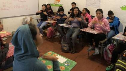 Efectivamente, ver hileras de niños que se dan golpecitos en el rostro al tiempo que repiten algunas frases puede resultar extraño.