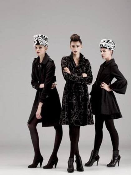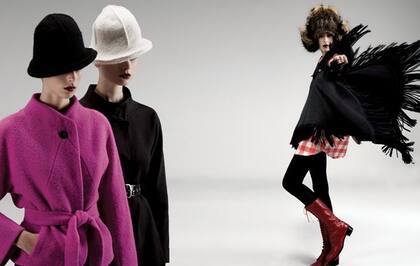 Der.: tapado con mangas balloon (Akiabara), medias (Silvana), gorro de piel (Shine) y botinetas (Ricky Sarkany).