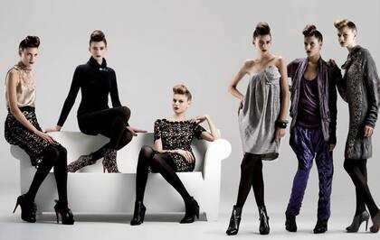 Izq., adelante: blazer fucsia (Escada), pantalón recto (Portsaid) y sombrero (Shine)
