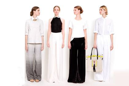 Top de seda con cuello redondo ($ 690, Cacharel), palazzo elastizado ($ 765, Mishka), plataformas de gamuza ($ 1350, Pepe Cantero)