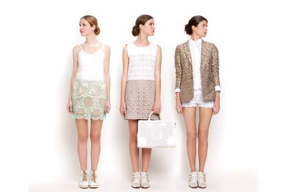Blusa de encaje ($ 183, Estancias Chiripá), musculosa de Lycra ($ 92, Caro Cuore), falda de encaje con forro a contra tono ($ 1140, María Dahn), zapatillas de cuerina caladas ($ 720, Blaqué)