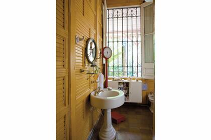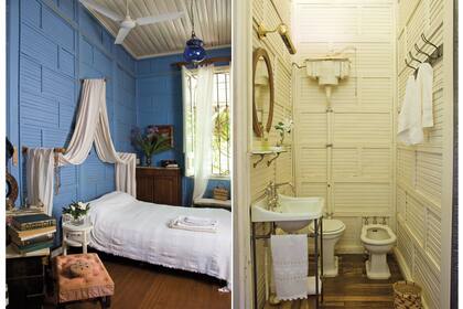 El dormitorio principal y los baños de la casa están revestidos con las placas de madera originales de la casa y sus pisos, con pino tea que persiste, intacta. El pequeño baño blanco fue sumado en una reforma posterior: para lograrlo se le quitaron algunos metros a la habitación de visitas, pero sin quebrantar el estilo original de la casa.