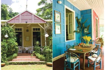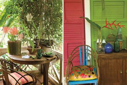 "Cuando llega un amigo agobiado desde la ciudad, le doy una tijera de podar y salimos a desmalezar el espíritu, a sacar lo seco y devolverle el aire para que respire", nos cuenta Socorro. Después de muchos años de vivir en Buenos Aires, decidió retornar a sus raíces y tomar la posta que, al morir, le dejó su hermana Celeste, quien por varios años fue el alma de ese lugar. Las galerías que recorren toda la casa están pobladas de rincones para disfrutar del jardín. En la apertura, el gomero que plantó el padre de Socorro impacta con sus raíces invasoras.