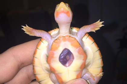 Tortuga albina. Nació con el corazón afuera e inspira con su historia de superación