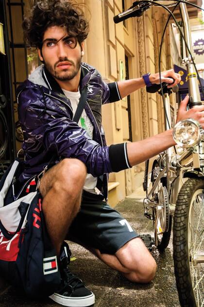 Campera deportiva ($ 709, Le Coq Sportif), remera ($ 120, Kevingston), bermuda de jogging ($ 420, Gola), zapatillas ($ 470, John Foos), bolso (Tommy Hilfiger), reloj de caucho ($ 1095, Swatch) Bicicleta plegable, ($ 3689, Canaglia)