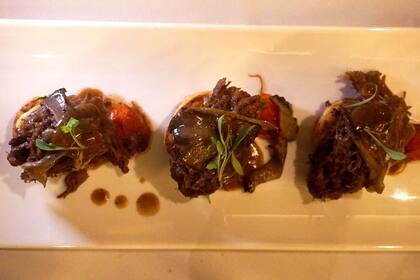 Una combinación poco habitual pero perfecta: dos carnes distintas, cordero y ternera, unidos por la magia de la larga cocción. Es uno de los platos principales de la carta invernal de Rëd, el muy buen restaurante del Hotel Madero, en el barrio más joven de la ciudad. Cada parte del plato se cocina por separado, un trabajo arduo para llegar al resultado justo. El rabo sigue instrucciones francesas, bien simples, en un hervor bajo de al menos tres horas junto con una mirepoix (corte de dados pequeños) de verduras, con el agua justa para tapar los ingredientes. El cordero, en cambio, primero se sella en aceite para generar sabor, luego se brasea en horno a 140°C por cinco horas, junto a una combinación de romero, ajo, vino tinto y caldo casero. Las carnes se deshuesan y deshilachan todavía en caliente y se guardan en film para evitar que se sequen. "Juntamos los líquidos de ambas cocciones, del rabo y del cordero, y lo reducimos hasta lograr un fondo de cocción bien concentrado", cuenta Alejandro Bontempo, chef ejecutivo de este hotel cinco estrellas. Finalmente, a la hora del servicio, sirven tres grandes gnoccis a la romana (hechos con sémola y un caldo de leche), arriba de cada gnocci va la carne deshilachada, luego un chorrito del fondo de cocción para sumar humedad y, por encima de todo, una seta (una lámina de portobello, una gírgola)."Las cocciones largas te permiten estas mezclas. El rabo es un corte maravilloso, la cantidad de colágeno que tiene no se puede creer. Y el cordero aporta la profundidad de su sabor, aparte de su propio colágeno. Es una combinación que nos gusta mucho", dice Alejandro. Y no queda más que estar de acuerdo con sus palabras. Dirección: Juana Manso 1691