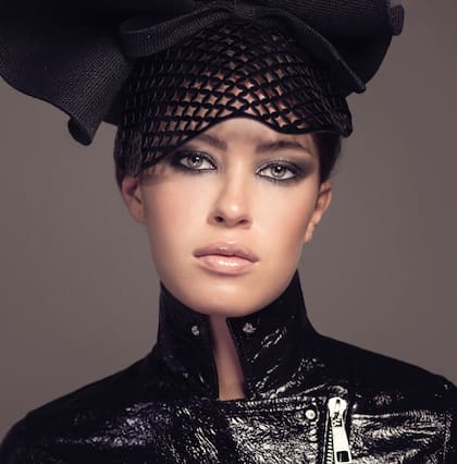 Tendencia: la iluminación con negro le da vida al resto de los colores y acentúa el resplandor de la tez natural. Tips: el labial bicolor Le Rouge Sculpt propone color y contorno en una misma barra. Propuesta de Givenchy, por Sebastián Correa. Sombrero de tweed con pompón de piel (Flor Tellado)
